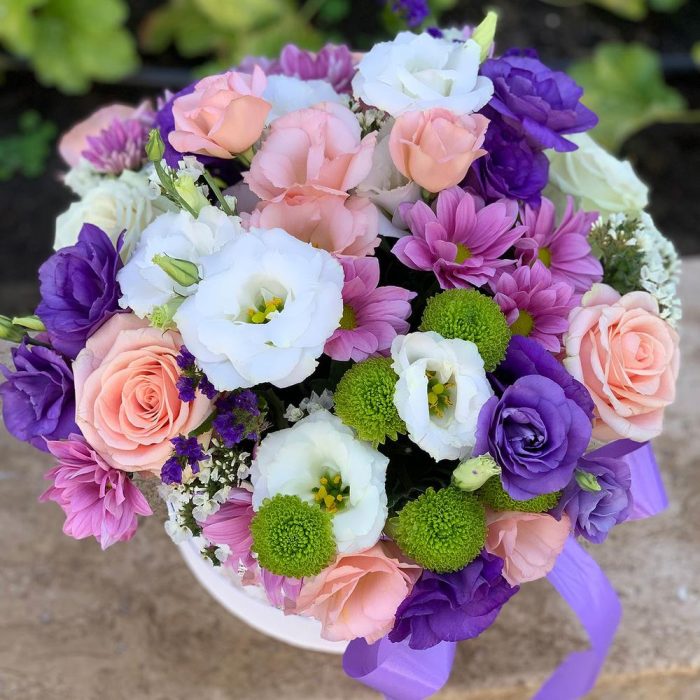 Яркая композиция в коробке из смешанных цветов.