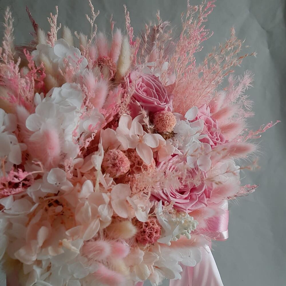 Роза стабилизированная – 3 шт.гортензия стабилизированная – 2 шт.лагурус (сухоцвет)пучок – 2 шт.Лимониум – 2 шт.аспарагус стабилизированный – 2 шт.папоротник стабилизированный – 3 шт.ветки декоративные – 15 шт.Оазис для сухоцветов – 1 шт.Коробка шляпная бархатная – 1 шт.Лента атласная – 3 шт.перо декоративное – 2 шт.