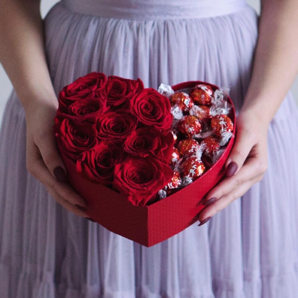 Коробка из 9 роз с конфетами