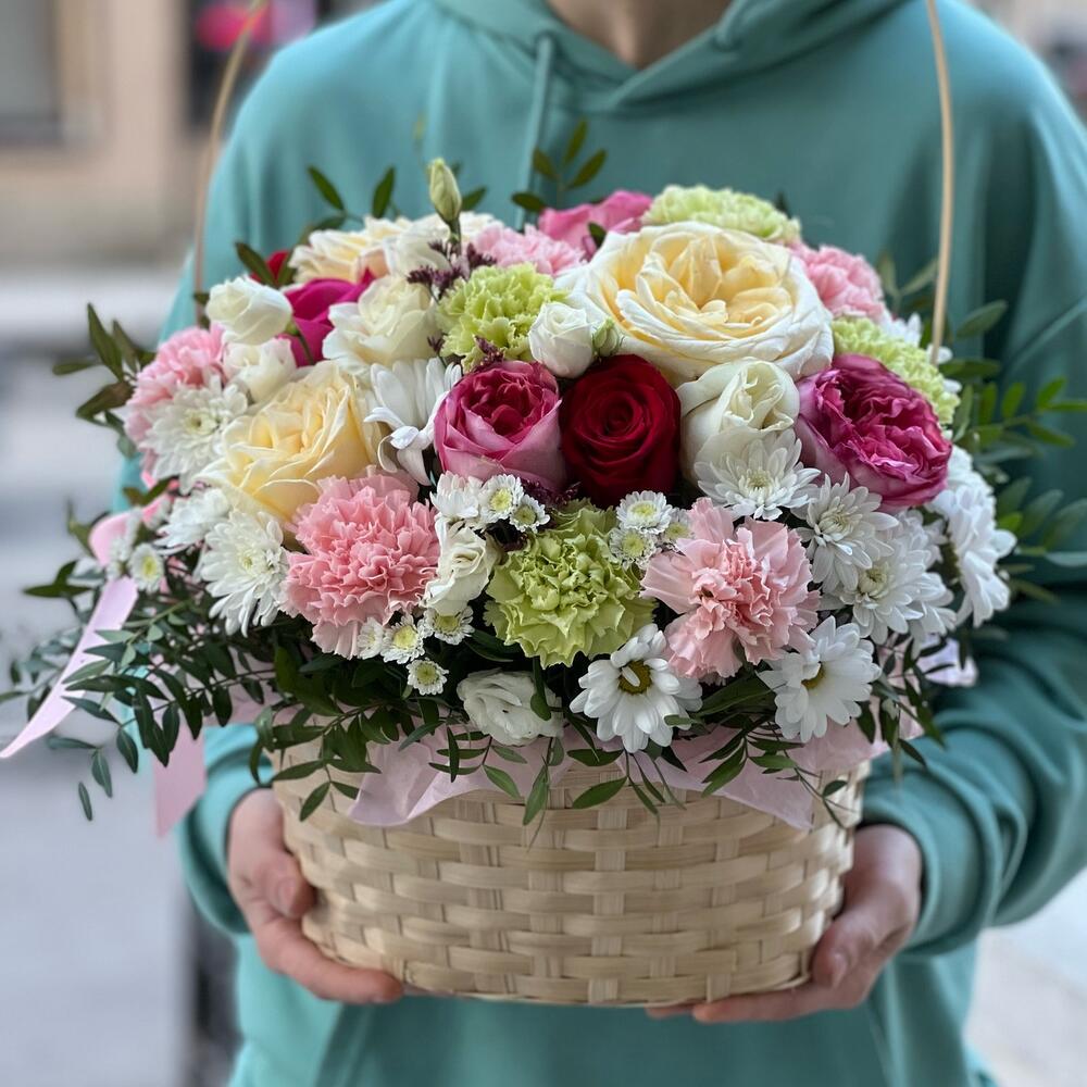Метки: от 5000 руб, цветы в корзине
