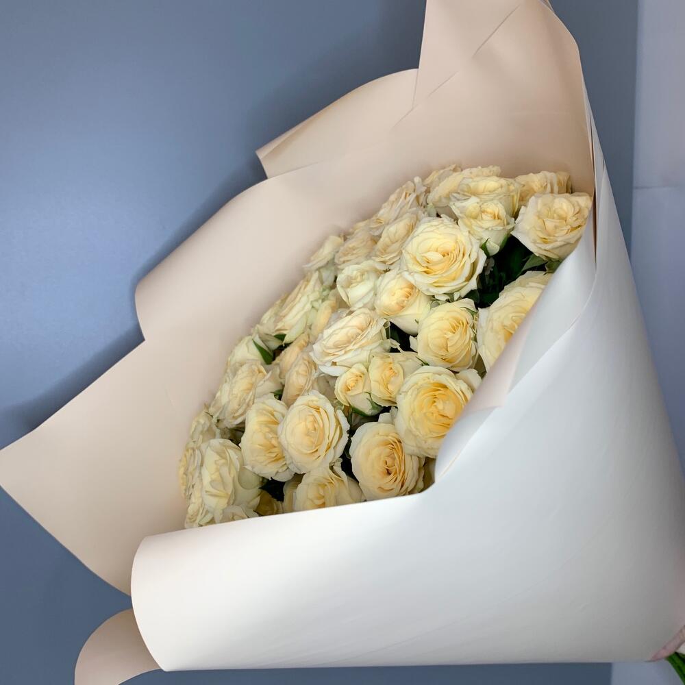Роза кустовая – 15 шт.Лента атласная – 2 шт.Дизайнерская упаковка – 2 шт.