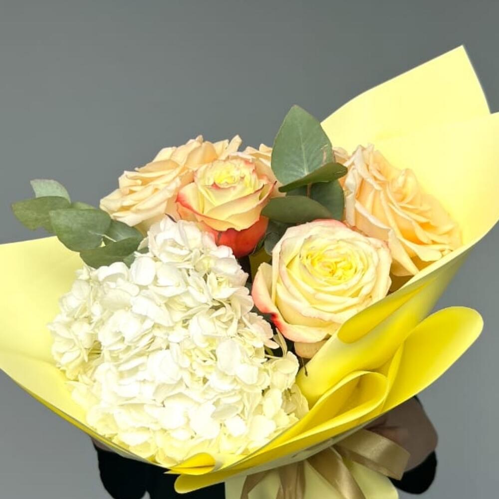 Гортензии, Кустовые розы, Лизиантусы, Пионовидные розы, Розы