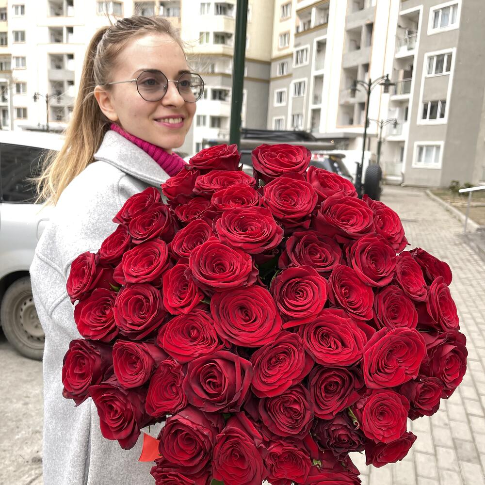 Метки: 51 роза, Красные розы, от 5000 руб, Роза 70 см