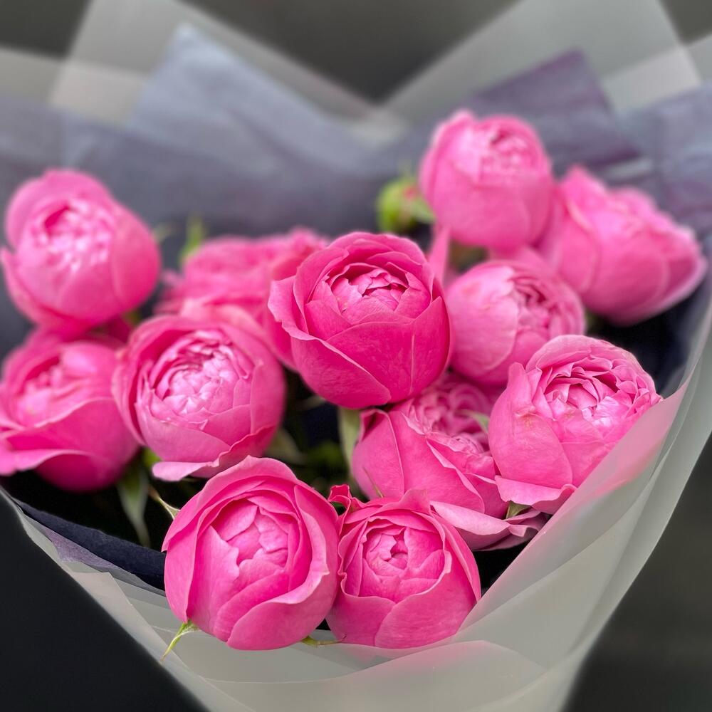 Лента атласная – 1 шт.Тишью – 1 шт.Пленка матовая – 1 шт.роза кустовая пионовидная кения – 3 шт.