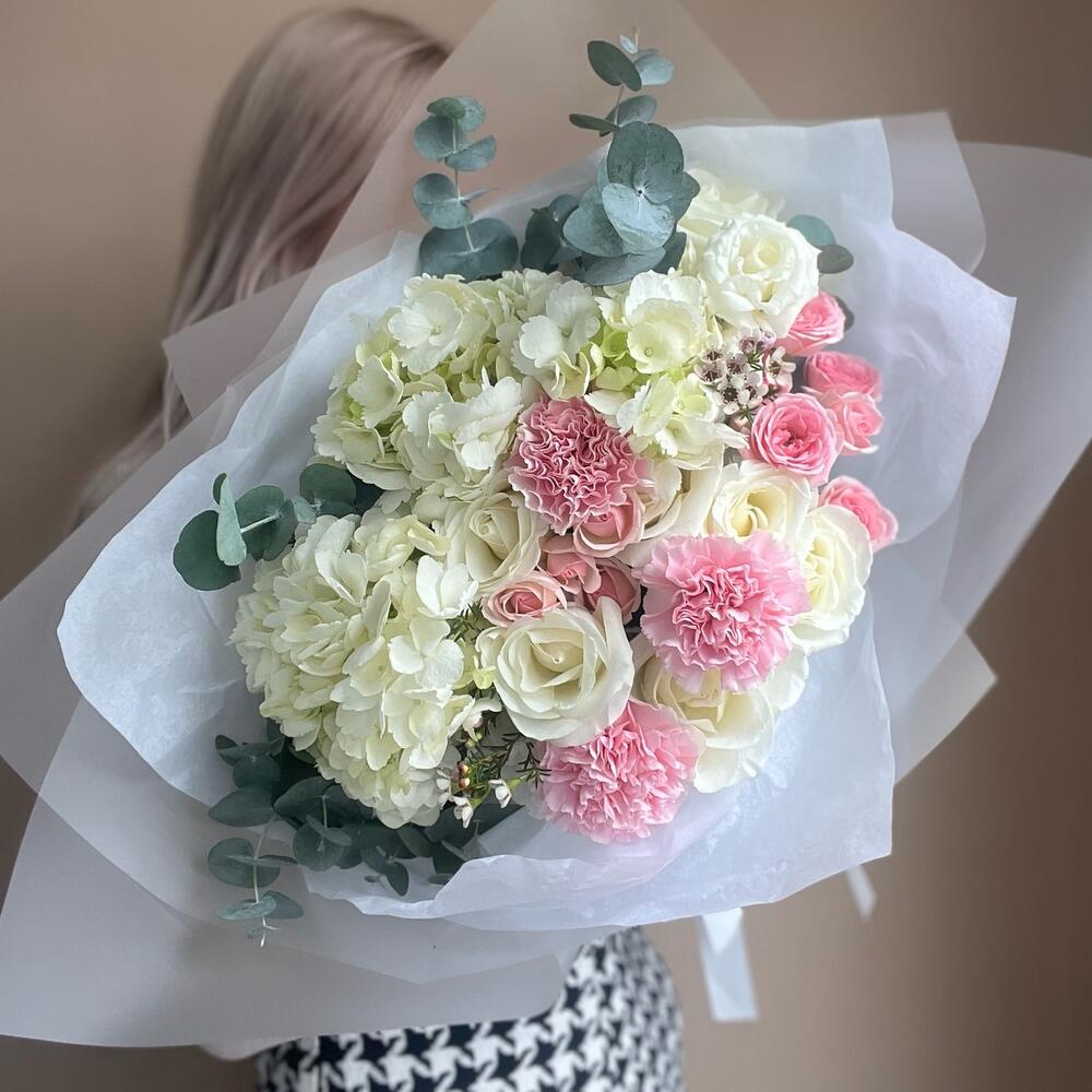 Гвоздики, Кустовые розы, Пионовидные розы, Розы