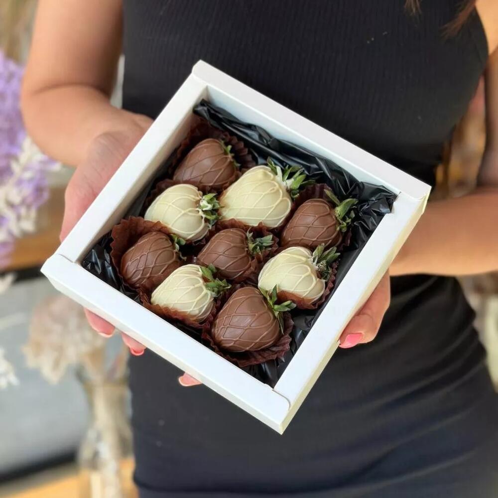 Прекрасный дуэт из клубники в шоколаде и букета роз, чтобы порадовать своего близкого человека.