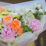Солнечный букет “Моё лето” с пионами и садовой розой