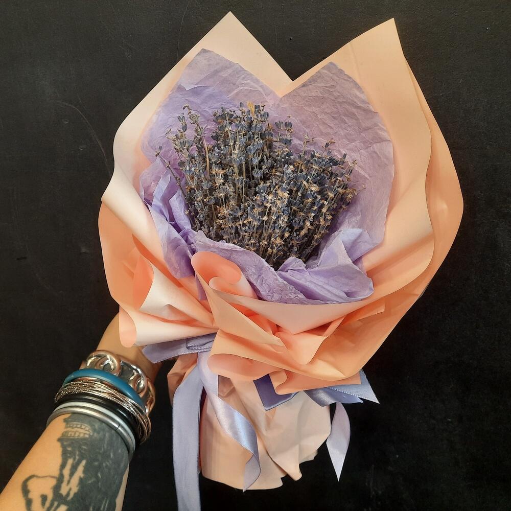 Лаванда – 75 шт.Лента атласная – 2 шт.Тишью – 1 шт.Калька – 2 шт.