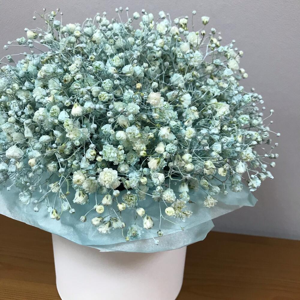 Тишью – 1 шт.Коробка шляпная – 1 шт.Оазис флористический – 1 шт.гипсофила сухоцвет – 6 шт.