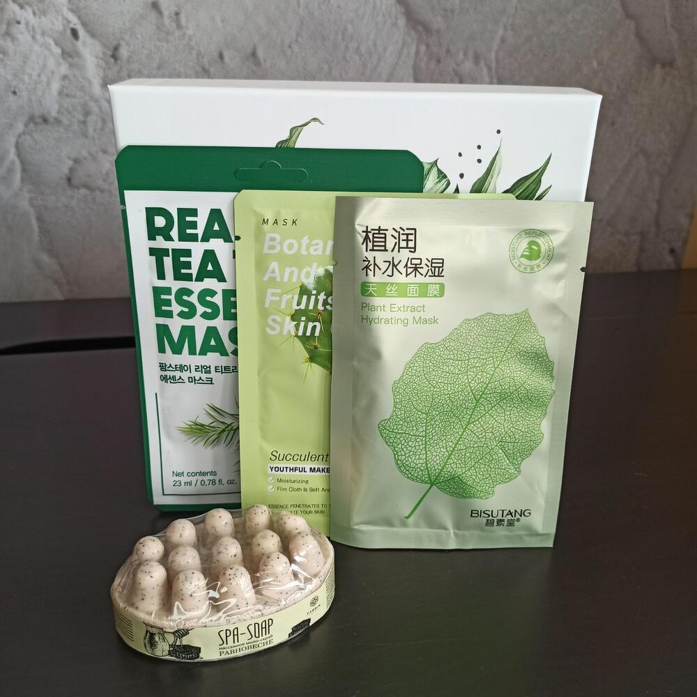 Внутри бокса находятся несколько продуктов, которые помогут дополнить ежедневный уход. К каждому продукту прилагается подробная информация и рекомендации по использованию.Не забудьте добавить маленькую записку, чтобы поздравить своего друга или близкого человека с днем рождения, юбилеем или другим праздником.Состав:Массажное мыло-скраб Fabrik cosmetology, «Равновесие», 90 гМаска тканевая для лица с экстрактами растений и трав, восстановление и омоложениеМаска тканевая для лица с экстрактом чайного дерева FarmStay Real Tea Tree Essence MaskТканевая маска для лица с экстрактом кактуса, увлажняющаяРасслабляющая соль для ванны “Beauty girl”, с лепестками душицы, 370 гСвеча ароматическая в банке “LAVENDER BASIL”, соевый воск, 90 г, лаванда и базиликПодарочная коробка.
