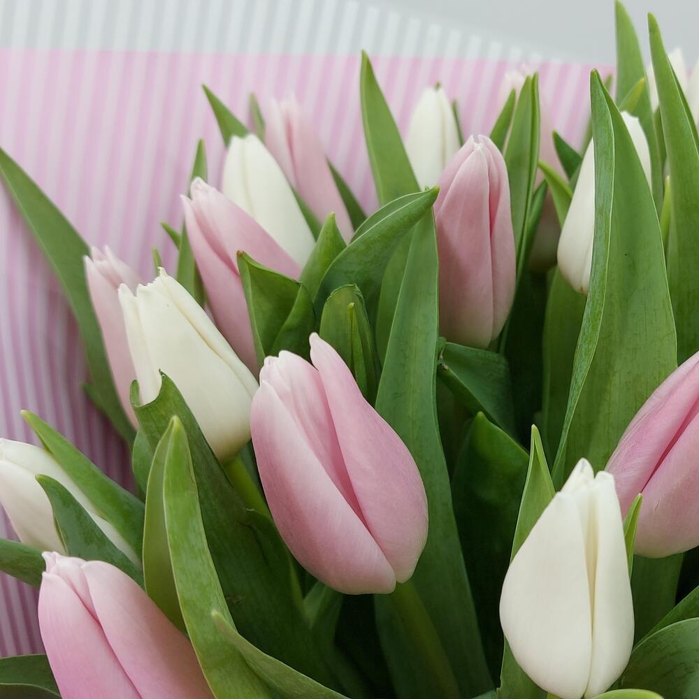 31 бело-розовый тюльпан с оформлением