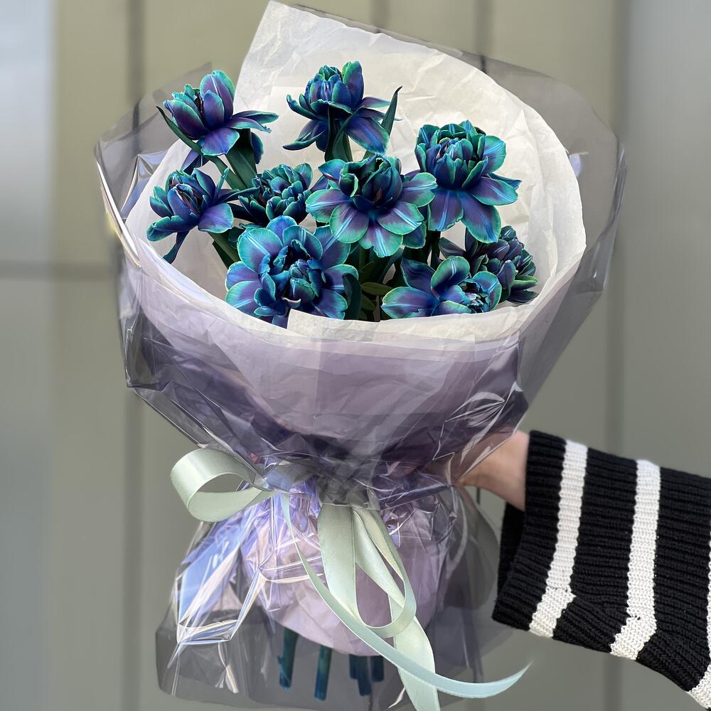 тюльпаны вип (крашенные) – 9 шт. Писташ – 2 шт. Оформление – 1 шт.