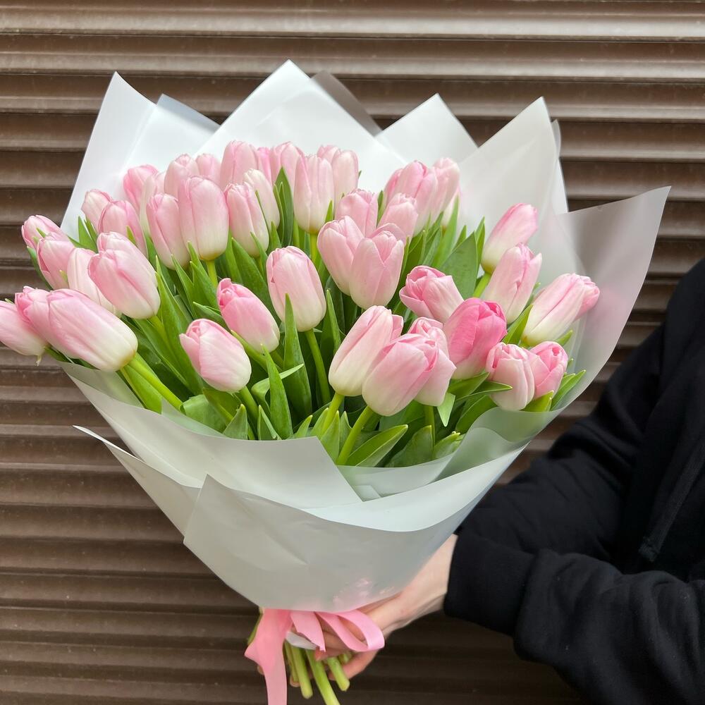 Тюльпан розовый – 51 шт.Пленка матовая – 3 шт.корея пленка – 3 шт.